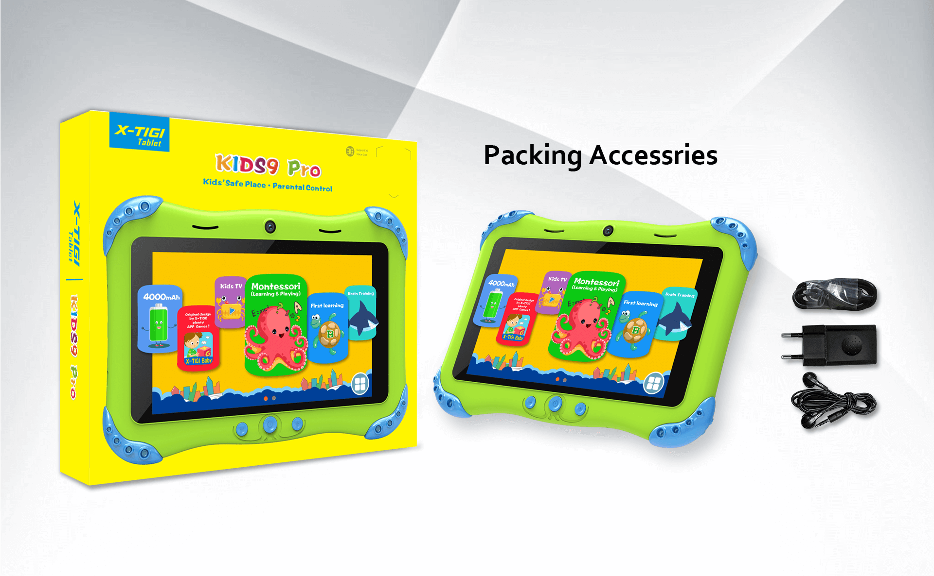 X-Tigi Kids 9 Pro is designed for Kids especially for the kids. It comes with a plastic framing and a glass front. It also has a Kid like case. It features a lot of apps and kids subscriptions.